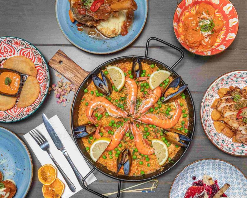 (Garlic Mushrooms+ Paella Croquettes+Haloumi + Patatas Bravas, Salad + Pitta Bread+Soft Drink)